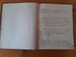 Hiihtoystäväin sääntöjen jälkeen pöytäkirjaan on jätetty kaksi tyhjää aukeamaa. Nämä on varmaan varattu mahdollisille tuleville kirjauksille/säännöille, jotka käsittelevät muuta seuran toimintaa, kuin kokouksien pöytäkirjoja.